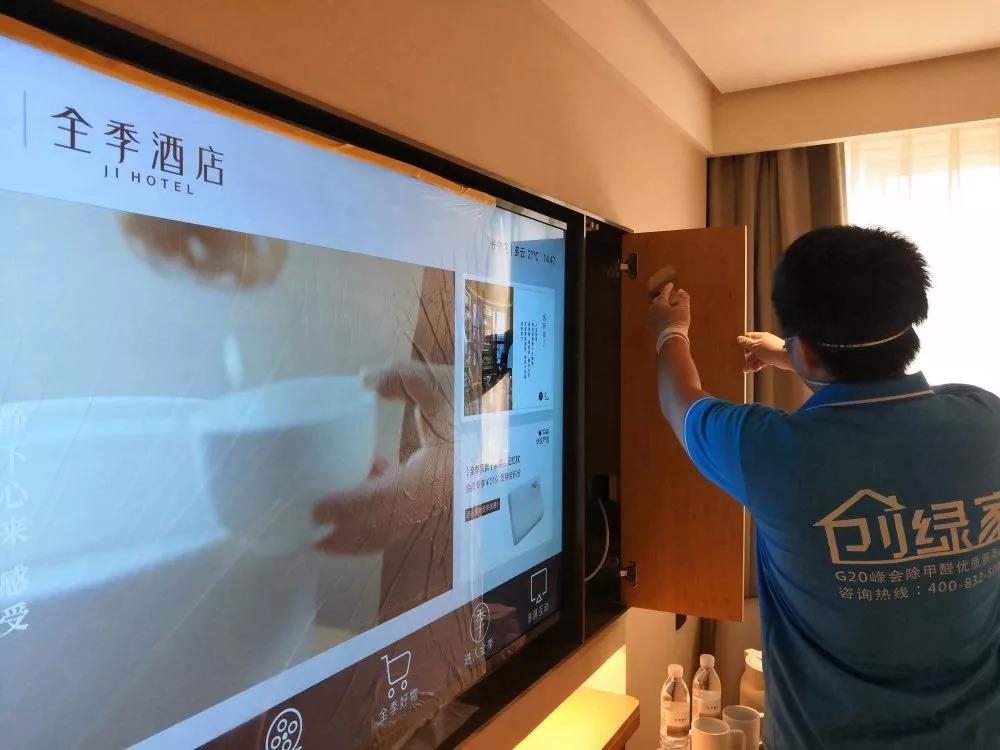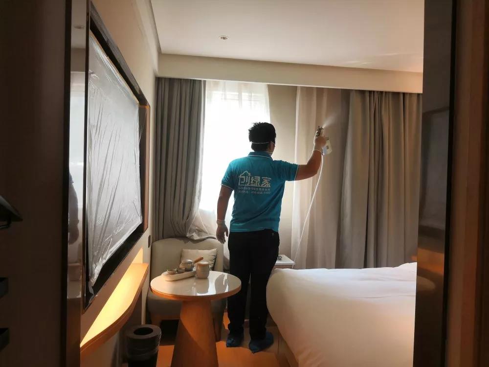 經(jīng)過(guò)檢測(cè)全季酒店室內(nèi)空氣不合格,就立馬找到除甲醛專(zhuān)業(yè)品牌創(chuàng)綠家環(huán)保,進(jìn)行室內(nèi)空氣治理,在施工人員幾個(gè)小時(shí)的治理下,辦公室空氣煥然一新,清新的空氣讓酒店方非常滿意。