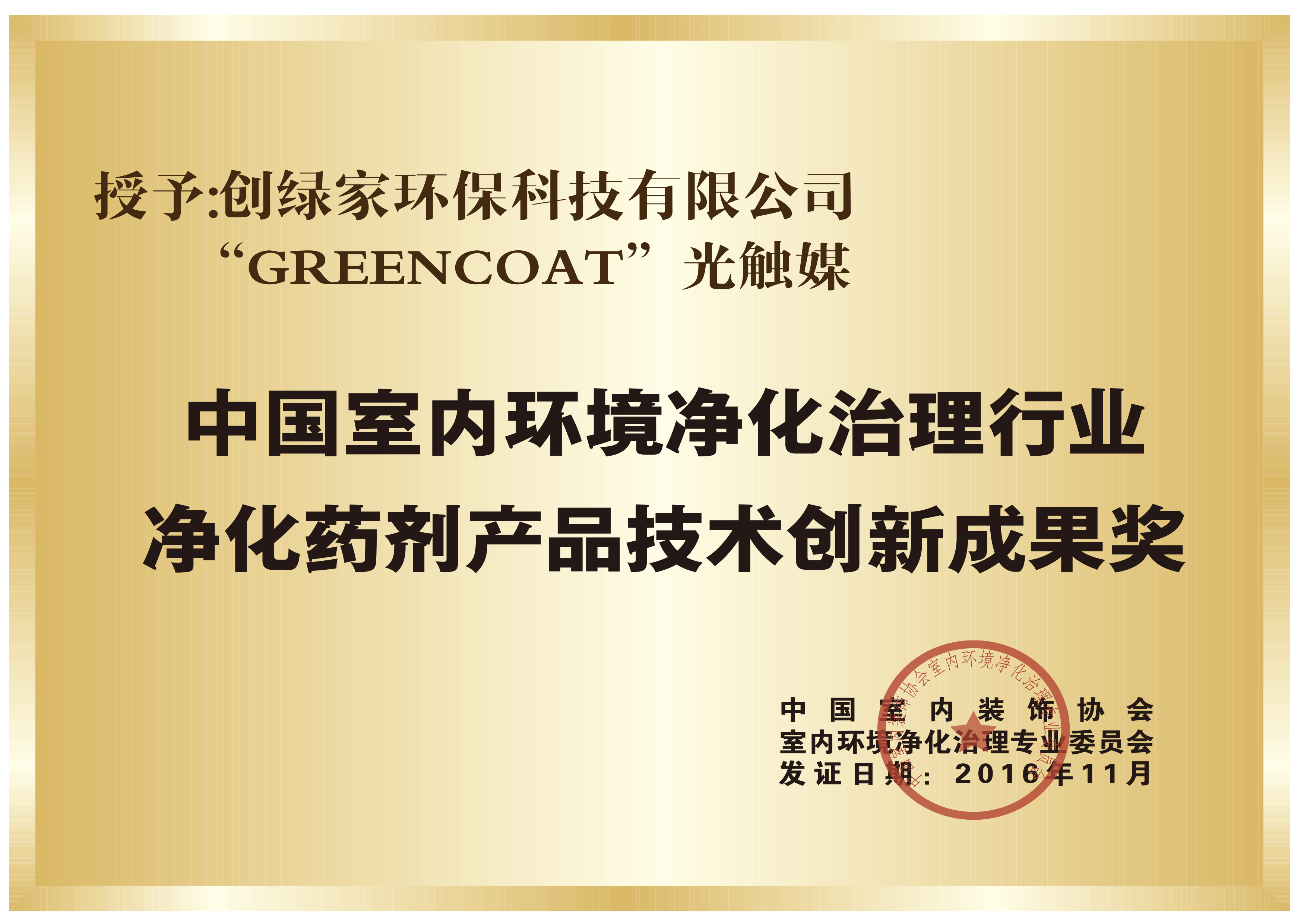 創(chuàng)綠家光觸媒系列產(chǎn)品通過了國家建筑工程材料質量監(jiān)督檢測中心、國家環(huán)保產(chǎn)品質量監(jiān)督檢測中心、國家室內環(huán)境與室內環(huán)保產(chǎn)品質量監(jiān)督檢驗中心等十余個權威機構的系統(tǒng)檢驗,產(chǎn)品技術指標完全符合國家標準,產(chǎn)品性能在國內處于***水平,對有害氣體的清除率達到了98%以上。