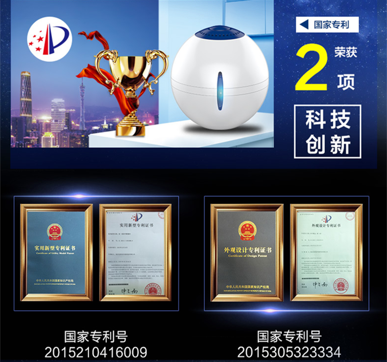 創(chuàng)綠家環(huán)??萍计煜旅餍钱a(chǎn)品搖一搖除甲醛魔球榮獲2項國家專利,并以小巧、實用、高效、方便的特征獲得廣大消費者的喜愛。