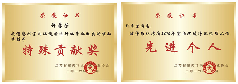 創(chuàng)綠家環(huán)??萍技夹g總監(jiān)、南京分公司負責人許厚榮先生也因此獲得了多項殊榮。