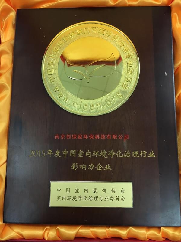 由中國室內(nèi)裝飾協(xié)會室內(nèi)環(huán)境凈化治理專業(yè)委員會主辦的“中國室內(nèi)環(huán)境凈化治理行業(yè)技術(shù)創(chuàng)新論壇暨2015年凈化委工作年會”在北京召開。會上,成立了中國室內(nèi)裝飾協(xié)會室內(nèi)環(huán)境凈化治理專業(yè)委員會金融資本服務(wù)平臺,并確定2016年為“中國室內(nèi)環(huán)境凈化治理行業(yè)體驗?zāi)辍保袊覂?nèi)裝飾協(xié)會室內(nèi)環(huán)境凈化治理專業(yè)委員會將推動行業(yè)公益項目和企業(yè)獨立公益項目的進程。會上授予南京創(chuàng)綠家環(huán)保科技有限公司2015年度中國室內(nèi)環(huán)境凈化治理行業(yè)影響力企業(yè)榮譽稱號!