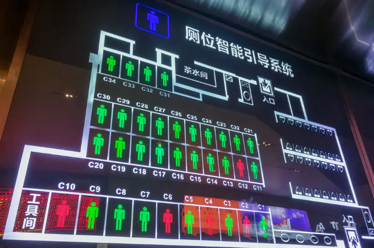 智能廁所配備紅色綠色有人無人燈,通過傳感器監(jiān)測實時人流信息,能夠自動控制廁所內(nèi)的清潔供應(yīng)。例如:廁所內(nèi)有人時供應(yīng)電、紙巾、水等資源,節(jié)約資源的同時也保證了衛(wèi)生。