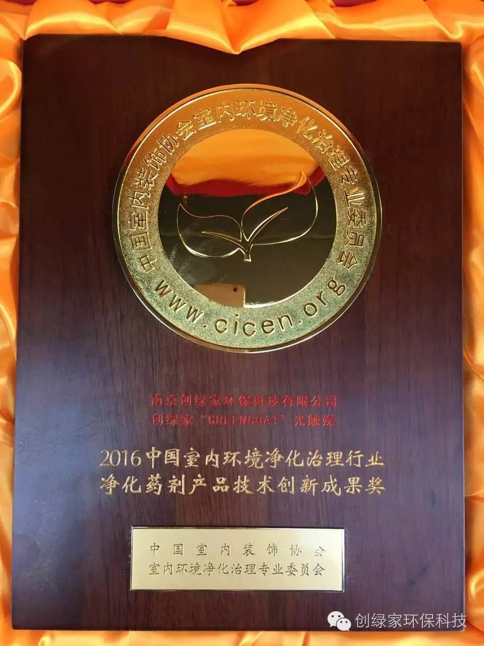 同時(shí),創(chuàng)綠家在11月底由中國(guó)凈化委組織在中國(guó)北京召開(kāi)的“2016中國(guó)室內(nèi)環(huán)境凈化治理行業(yè)創(chuàng)新技術(shù)大會(huì)暨‘平臺(tái)+’‘服務(wù)+’‘健康+’戰(zhàn)略發(fā)布會(huì)”中,也獲得過(guò)“凈化藥劑產(chǎn)品技術(shù)創(chuàng)新成果獎(jiǎng)”,可謂是雙喜臨門(mén)。