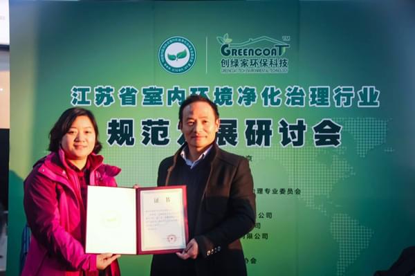 最后,凈化委向創(chuàng)綠家環(huán)??萍碱C發(fā)了“蓓蕾健康空氣行動(dòng)”江蘇省執(zhí)行單位證書(shū)。
